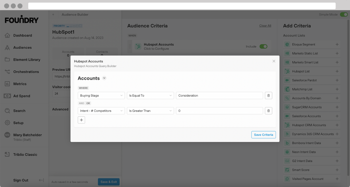 - Build Orchestration stages in Foundry ABM using G2 Buyer Intent signals, providing a targeted experience to accounts showing interest in your G2 Profile, Category, Competitors, and more.