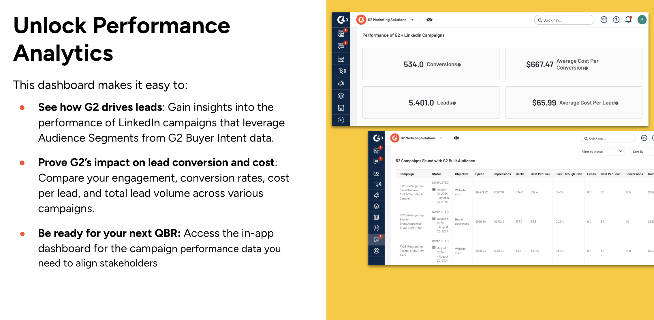 See how G2 drives leads and gain insights into the performance of LinkedIn campaigns that leverage Audience Segments from G2 Buyer Intent data.