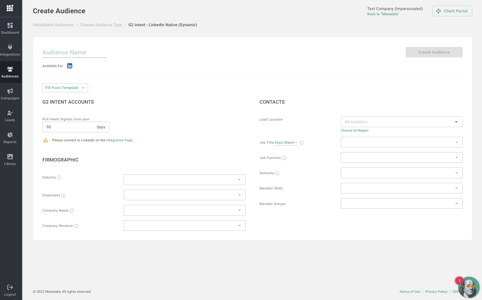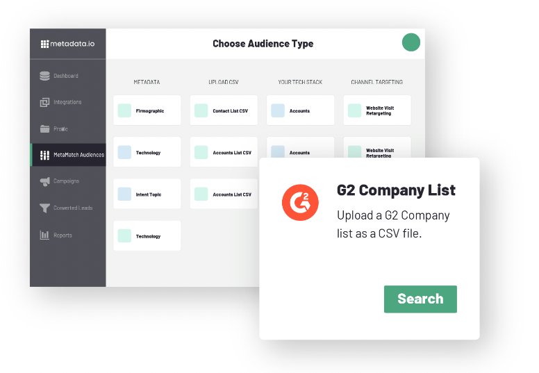 - Connect your G2 Buyer Intent data to Metadata in order to build dynamic audiences. Â