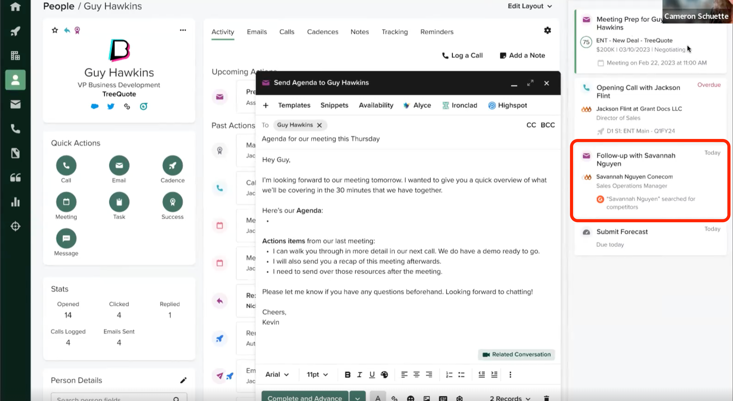 From sending automated emails, dialing calls, completing tasks, making LinkedIn connections, projecting attainment, and more, Salesloft Rhythm keeps it all in a single platform so sellers can focus on what matters most: building relationships to drive and retain revenue.