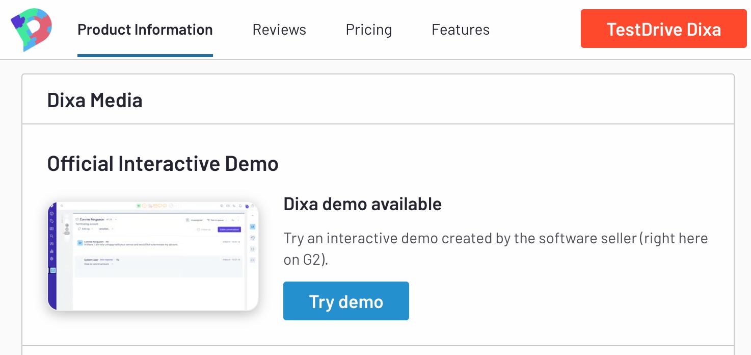 - Deliver a custom experience with interactive demos on your G2 Profile