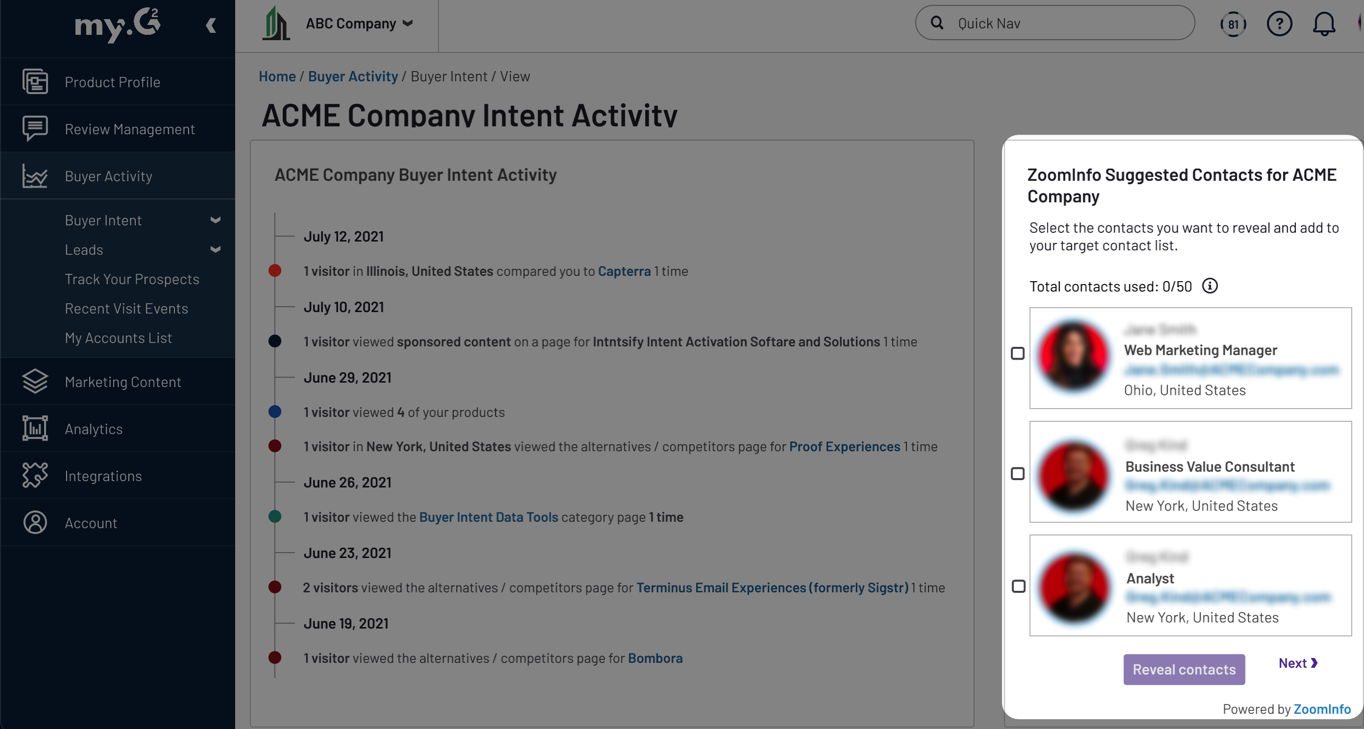 ZoomInfo Suggested Contacts in my.G2: